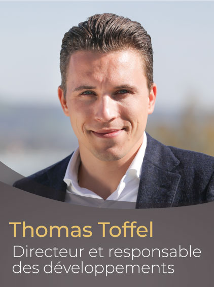 Société dynamique, tout en préservant l’éthique de son fondateur, la seconde génération, représentée par Thomas Toffel apporte une expertise précise face aux aspects de la promotion immobilière et de la réalisation de nouveaux projets.